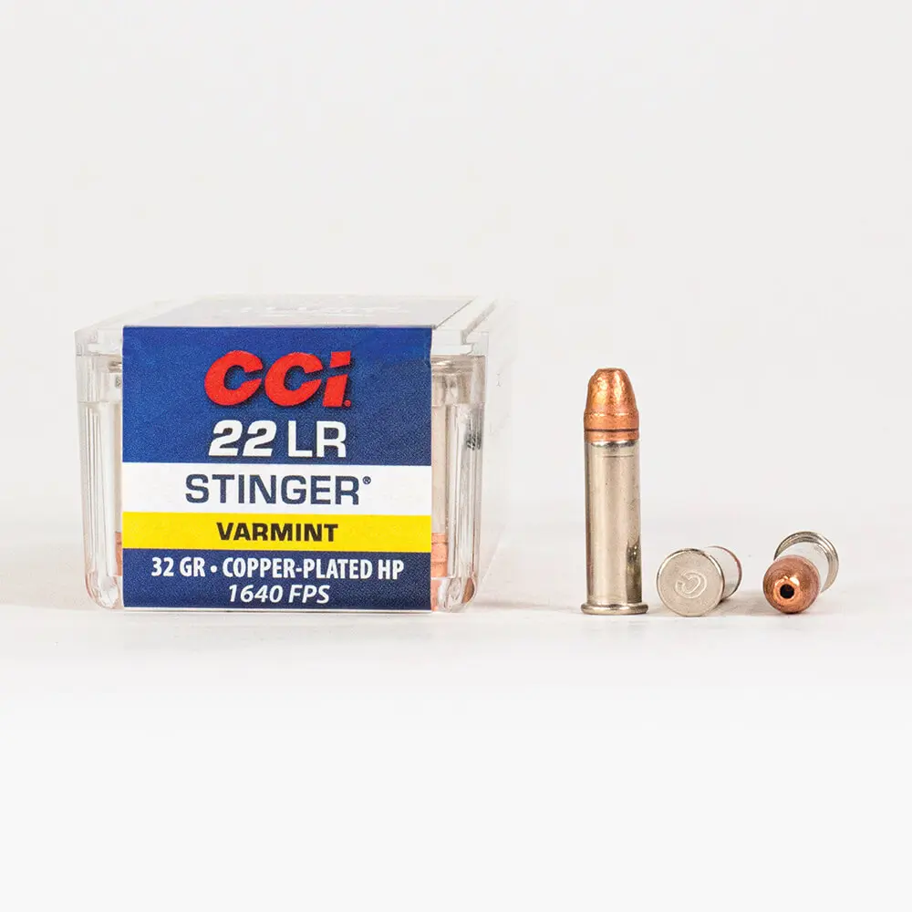 Unlike common plinking ammo, the CCI Stinger features a unique 32-grain tear drop hollowpoint design that maximizes tissue disruption in your target.