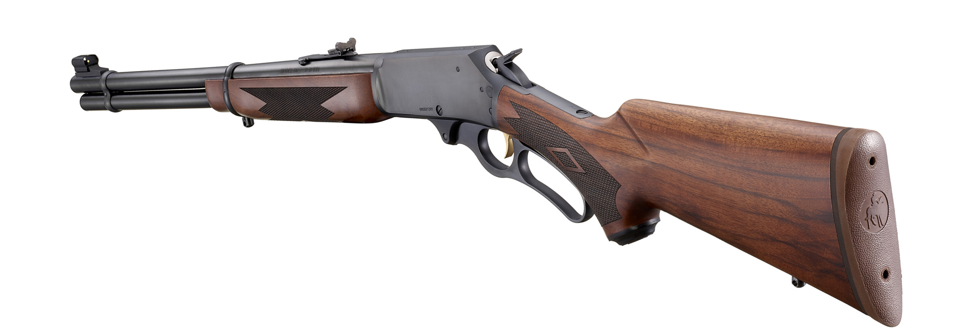 American black walnut stock and forend with Marlin Horse & Rider medallion in grip cap.